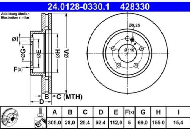 DISCOS FRENO ATE (D)(V)(5H)(305) W205 CLASE C (18-)