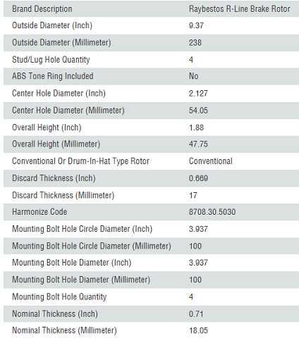 DISCOS FRENO RAYBESTOS 238MM TOYOTA COROLLA 1992-1989