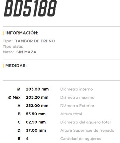 Ø 203.00 mm Diámetro interno